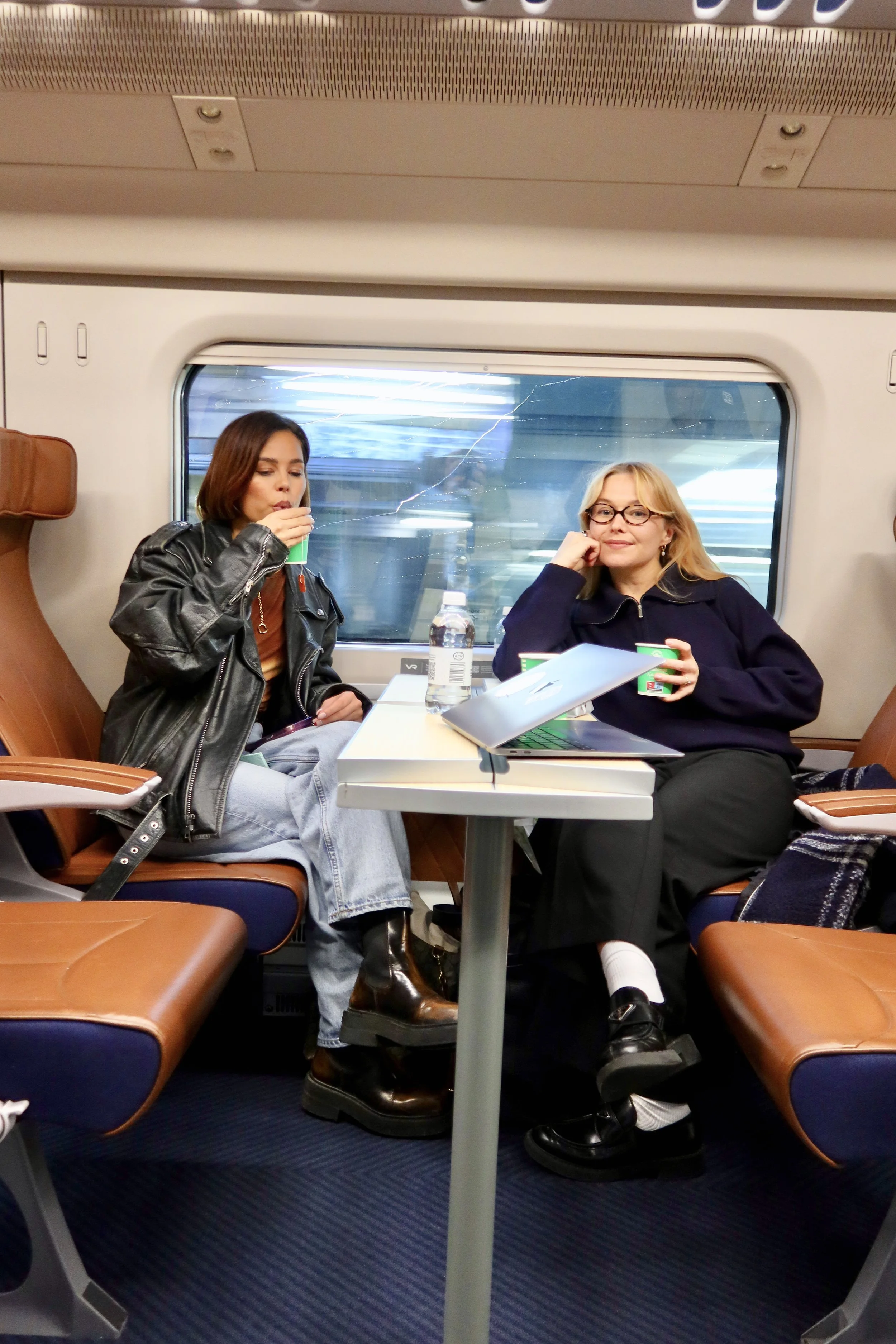 Pendolino Plus -junassa on kaksi ekstraluokkaa: Ekstra Rauhallinen ja Ekstra Plus. Mimmit valitsivat tällä kertaa Plus-luokan, ja rehellisyyden nimissä kokemus junamatkustamisesta nousi aivan uudelle tasolle.